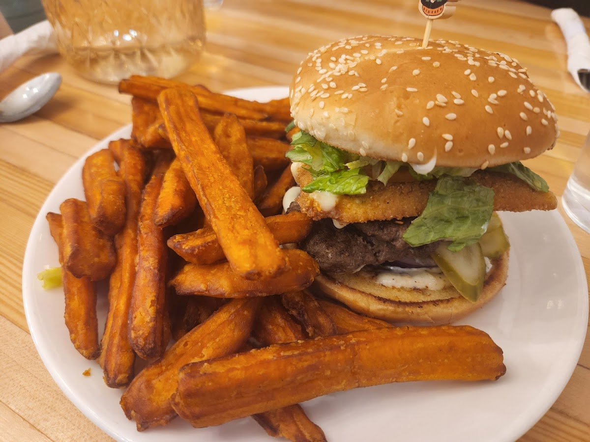 For main courses, the Cattleman’s Fiesta Burger is a highlight, featuring juicy beef seasoned with taco spices and topped with cheddar cheese, all brought together by crispy Doritos and a dollop of sour cream. It's a taste adventure! Vegetarians will appreciate the Farmstead Crunch, with its deep-fried smoked cheddar patty, sure to satisfy even the heartiest of appetites.